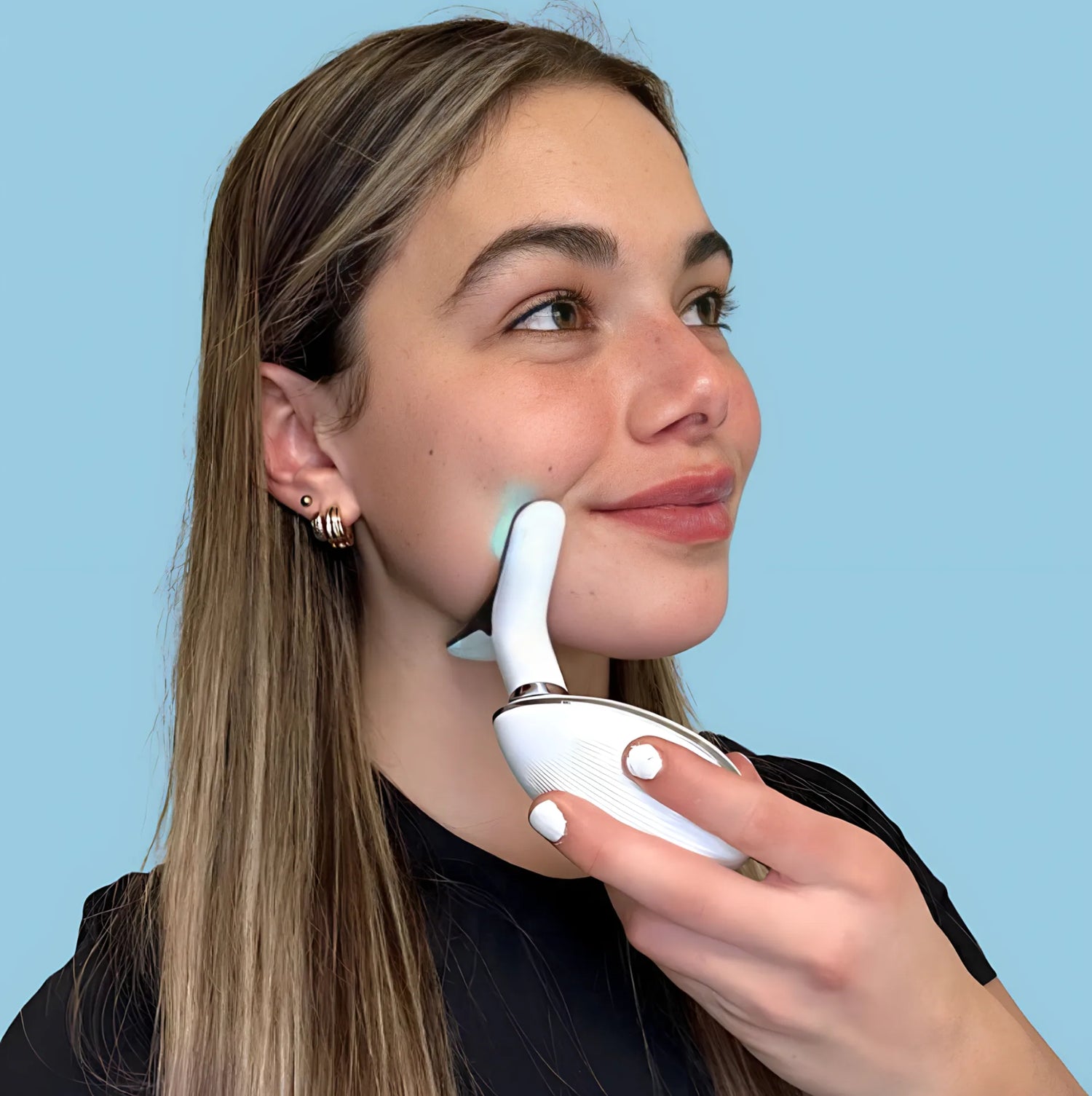 Illuminate your complexion with consistent use of the GlowLift Tool. The soothing LED lights help balance skin tone and boost radiance, revealing a more even, vibrant glow that shines with confidence.