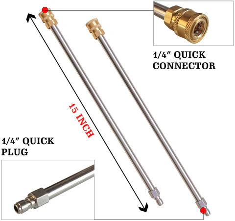 - Extension wand: 2 * 15'' pressure washer wand with ¼'' plug and ¼'' quick-connect fitting